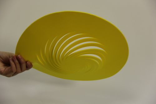 最終生產出的帽子,主體為明亮的黃色 EVA 泡棉,螺旋狀的鏤空內襯結構清晰可見,造型獨特且富有層次感。從不同角度觀察,帽子既有著圓潤的輪廓,又因鏤空呈現(xiàn)出靈動的視覺效果,整體新穎、活潑,兼具創(chuàng)意與實用性。投入市場后,這款帽子憑借其獨特的設計和 EVA 泡棉內襯帶來的良好質感,受到了消費者的廣泛關注與喜愛,為客戶的品牌推廣起到了積極的作用,也成為了該創(chuàng)意設計公司的一款明星產品。